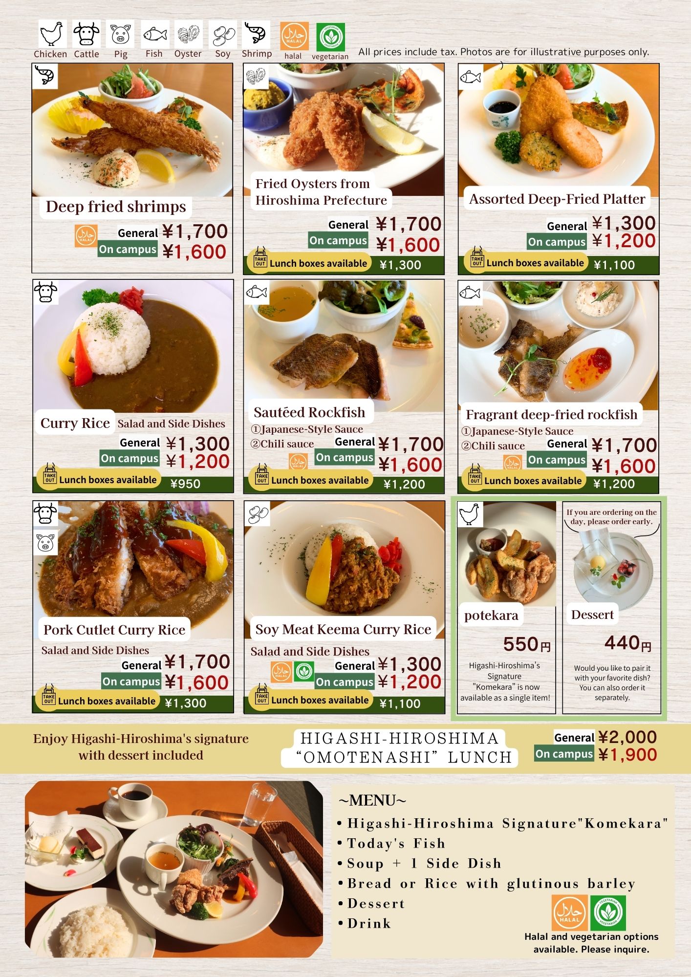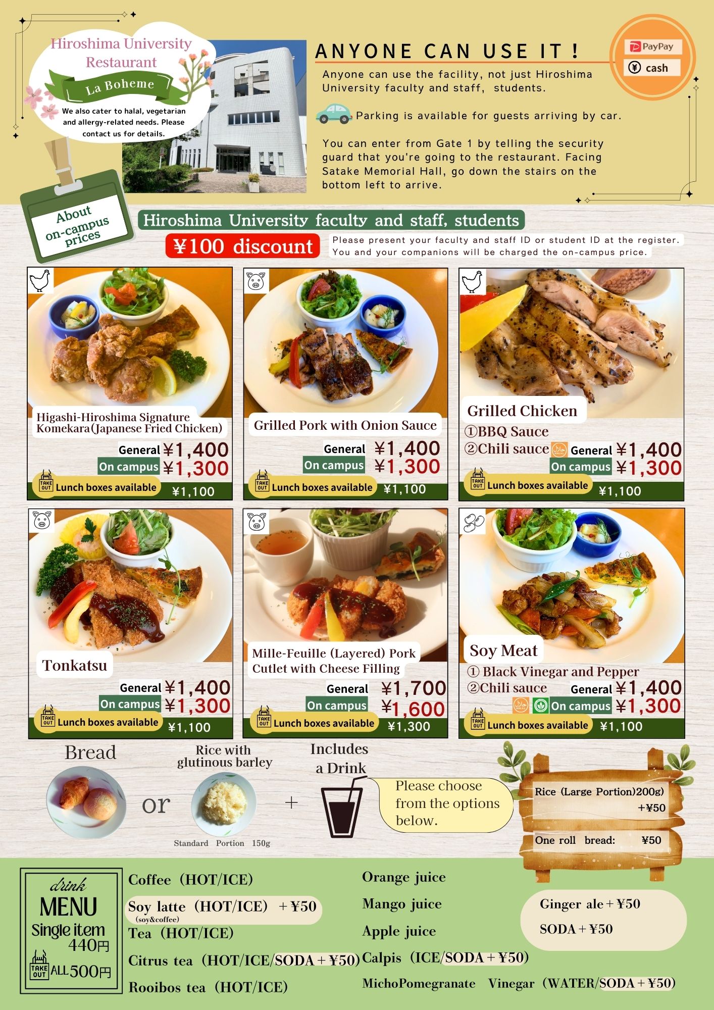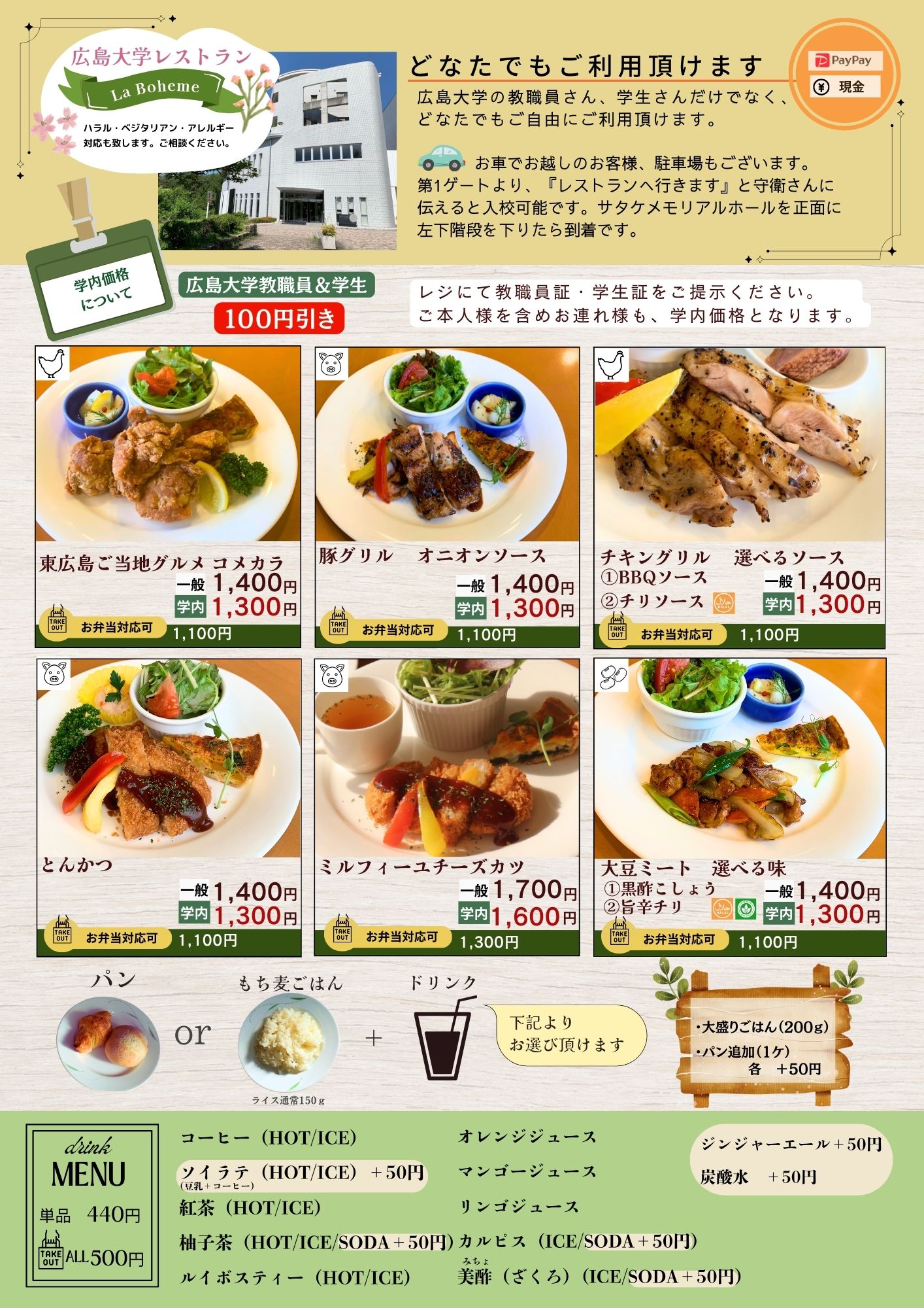 ※広大職員証・学生証をご提示いただくと一般価格より100円引きさせて頂きます。