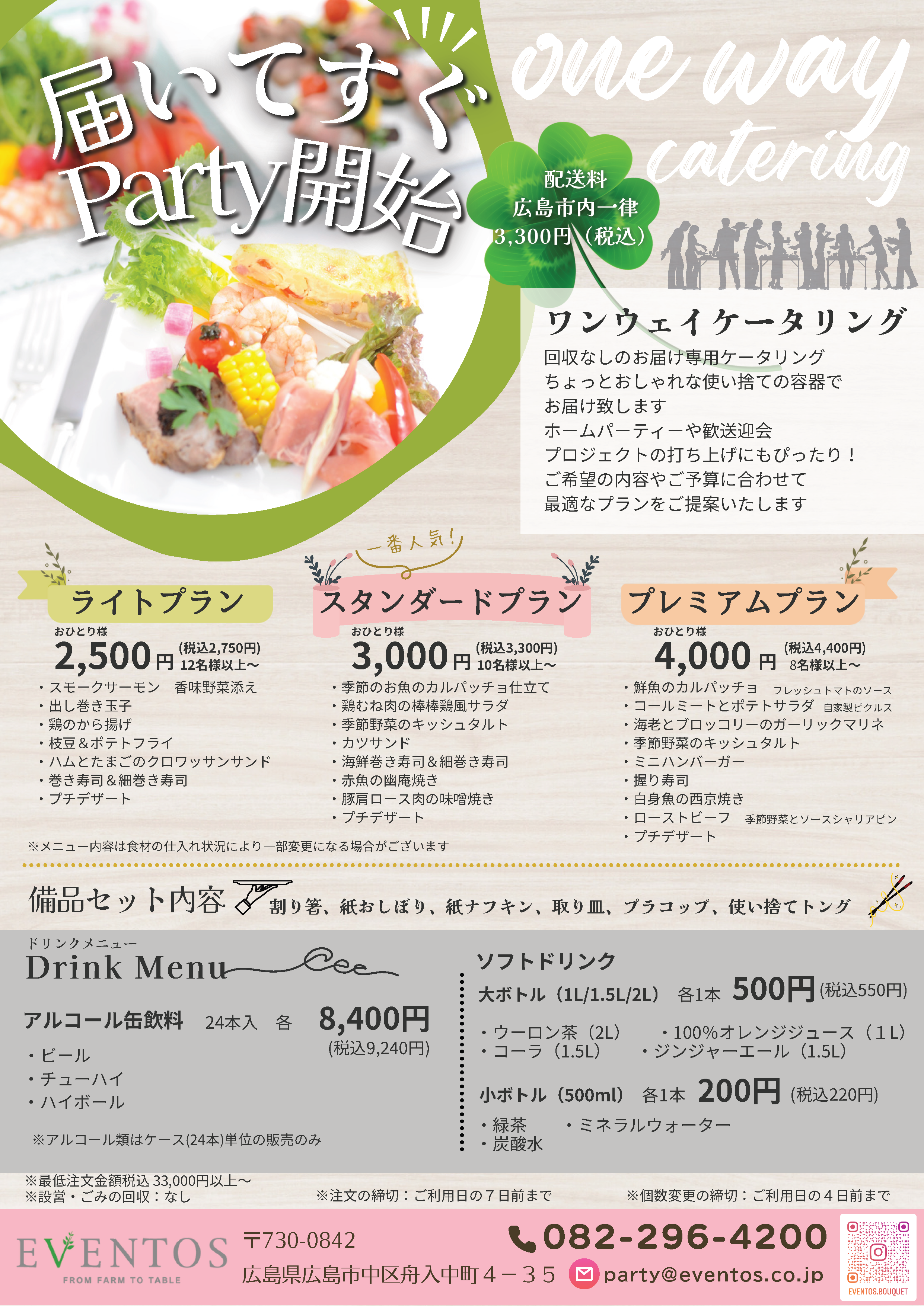 回収なしのお届け専用ケータリング。