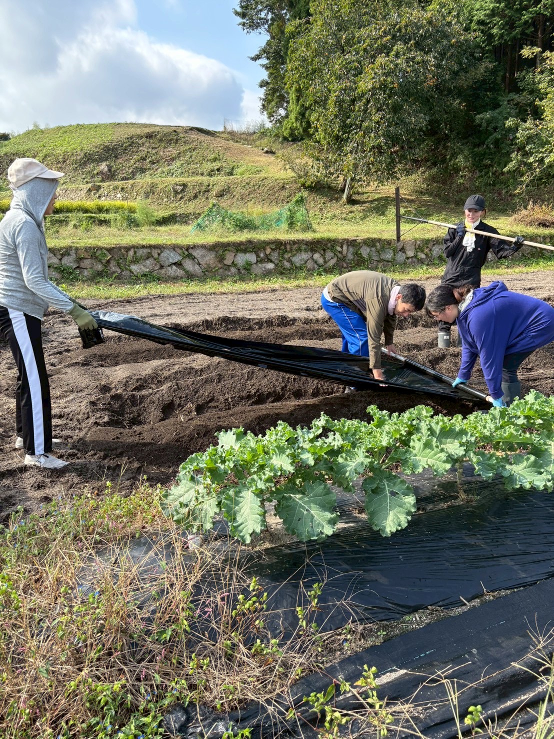 この日はみんなで畝立て、マルチ張り、苗の定植をしました!